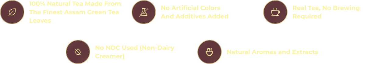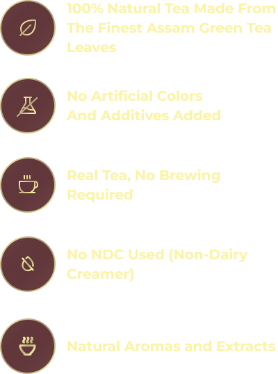 It is the only premix soluble tea in the market that is free from artificial additives, chemicals & NDCs and contains all-natural ingredient’s extract sourced from various farms of India.