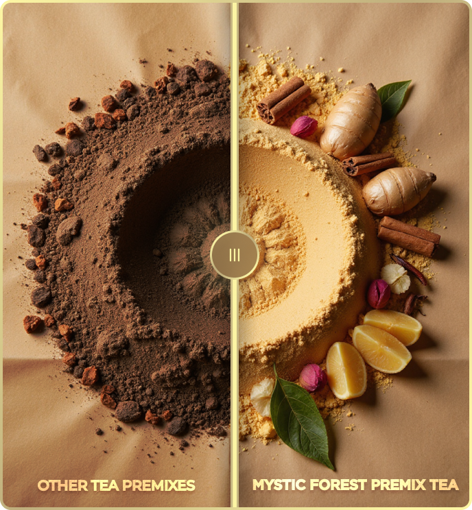 Traditional Tea brewing methods discard valuable flavour components and tea solids that are kept intact with Mystic Forest Premix Soluble Tea!